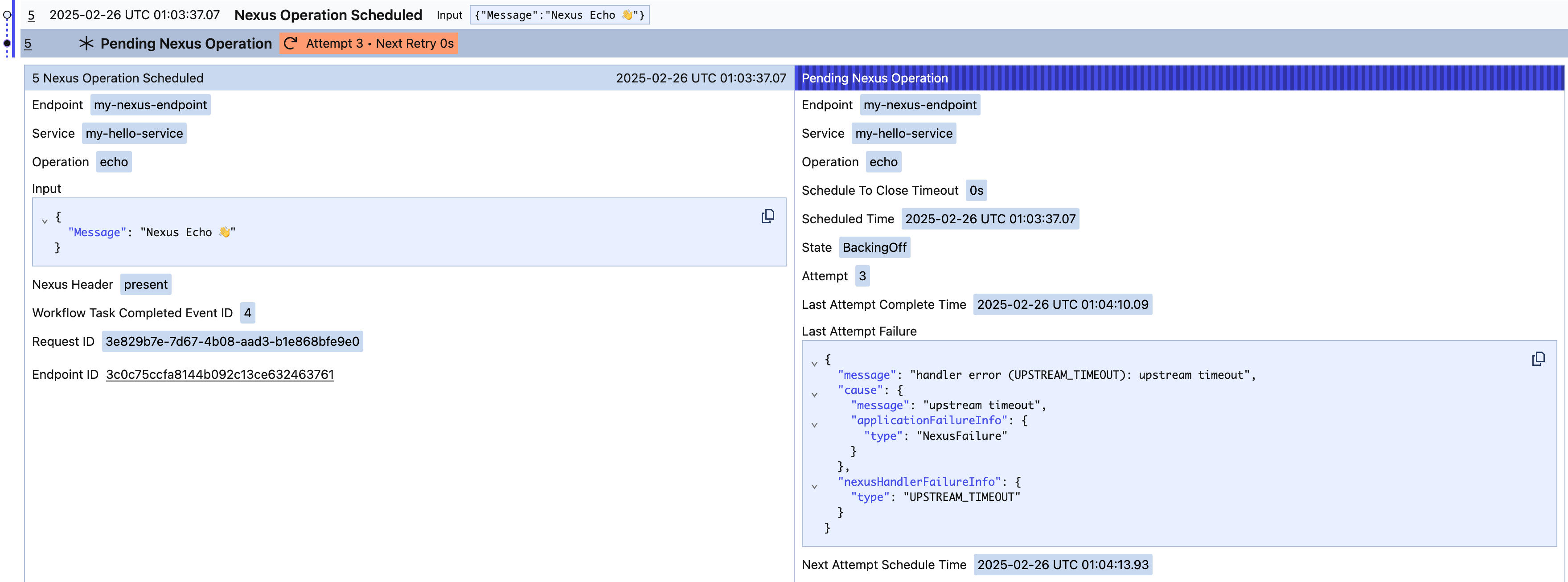 - To a Nexus Operation event in the caller's Workflow history.